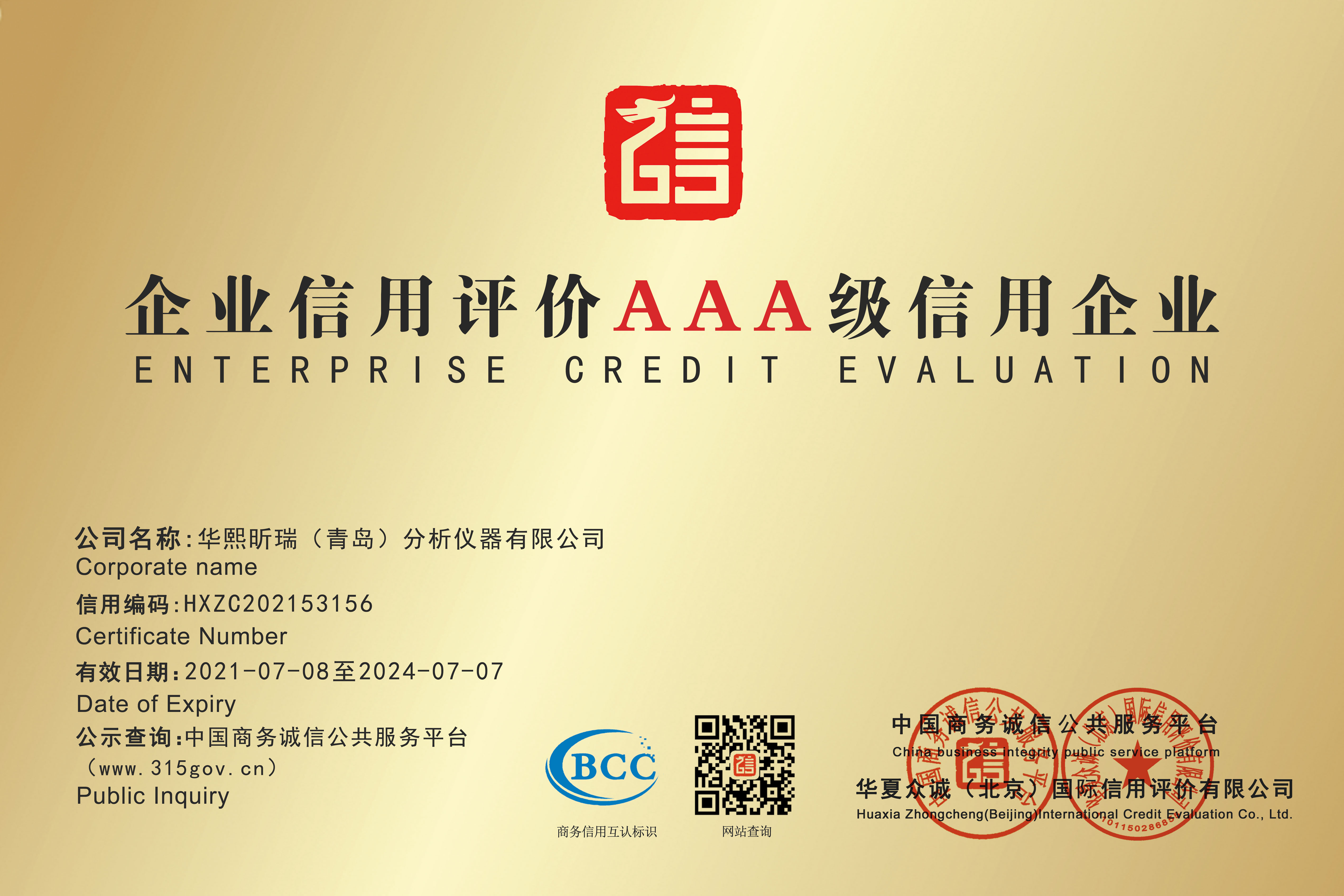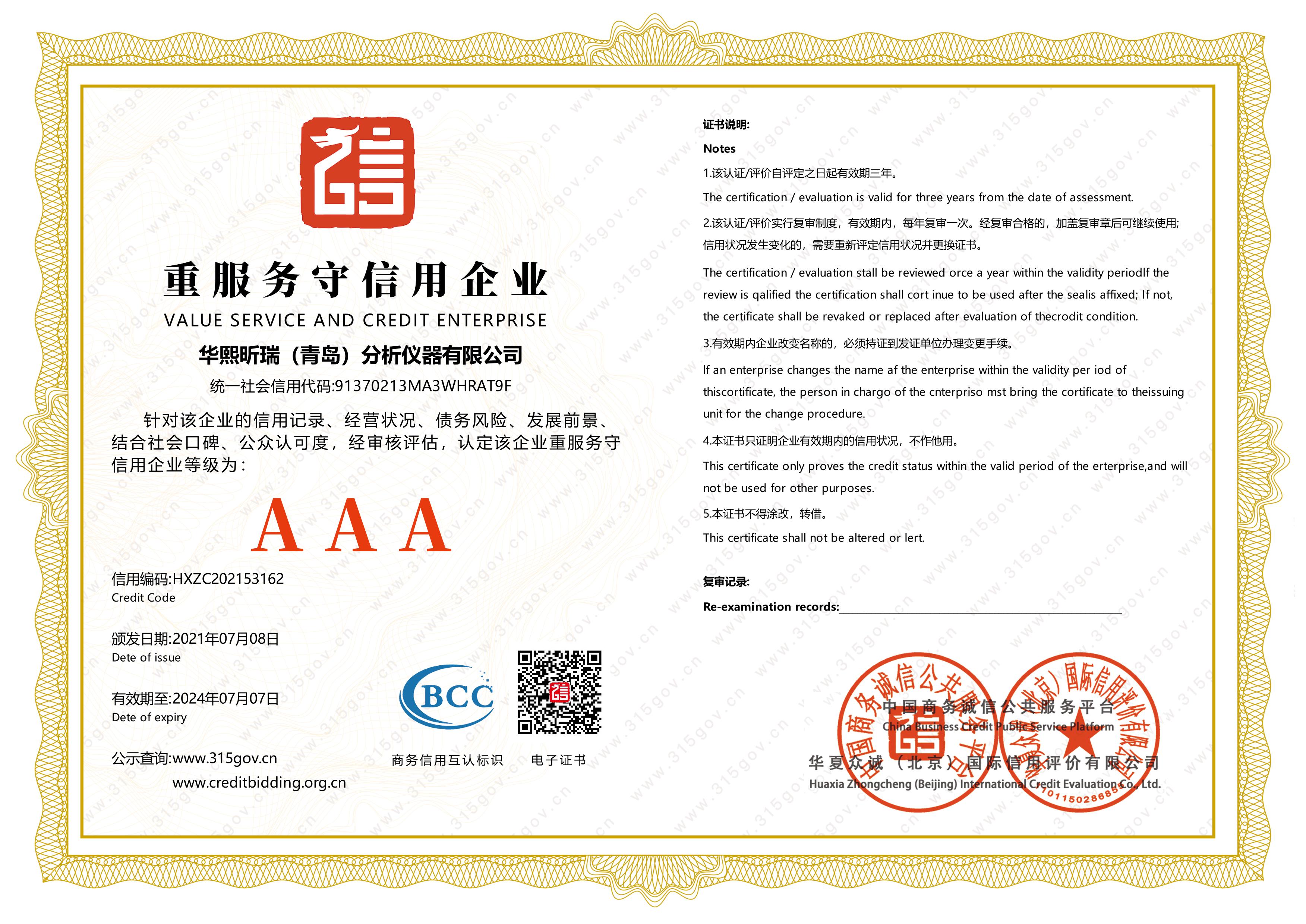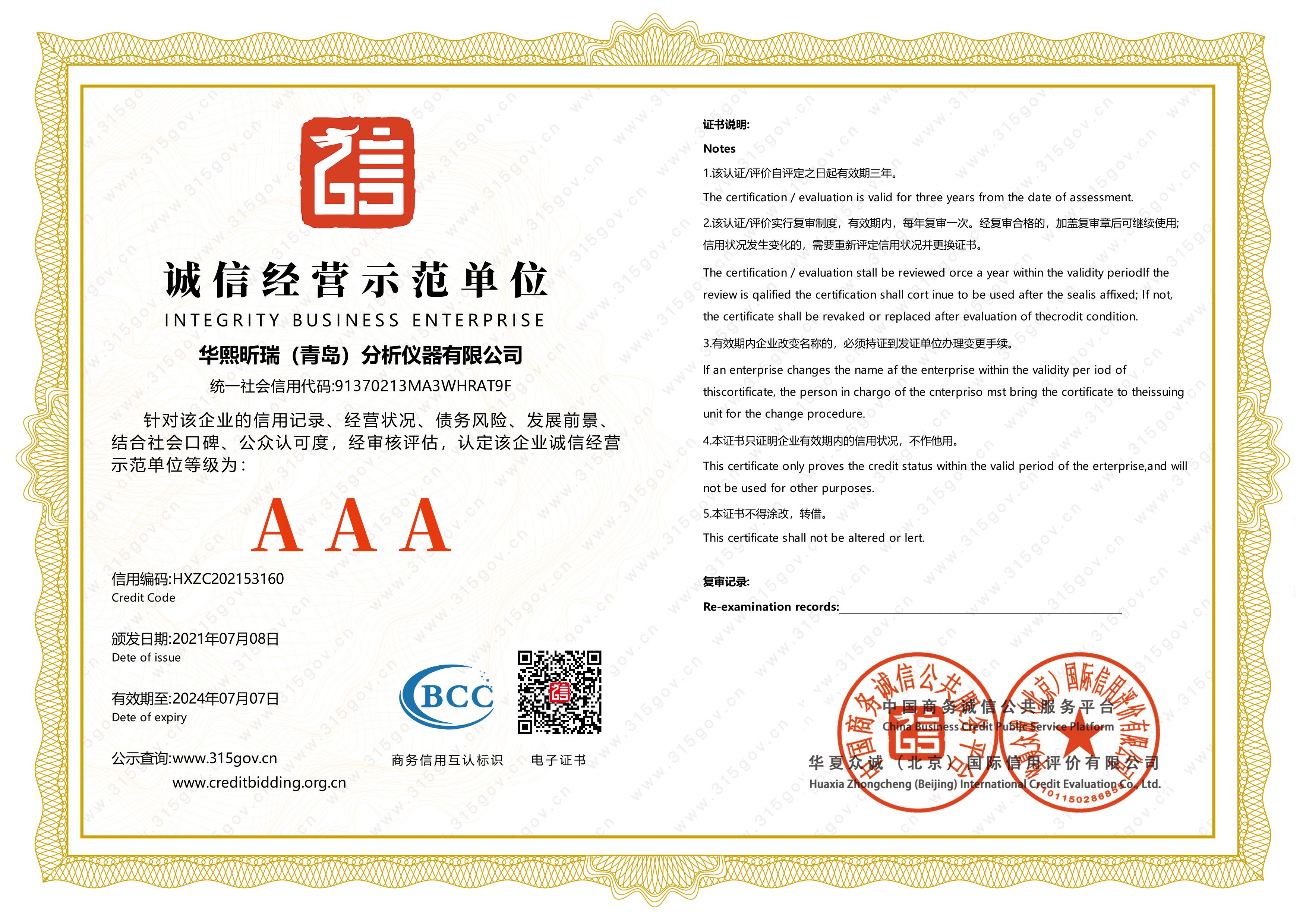 企業信用資信證書